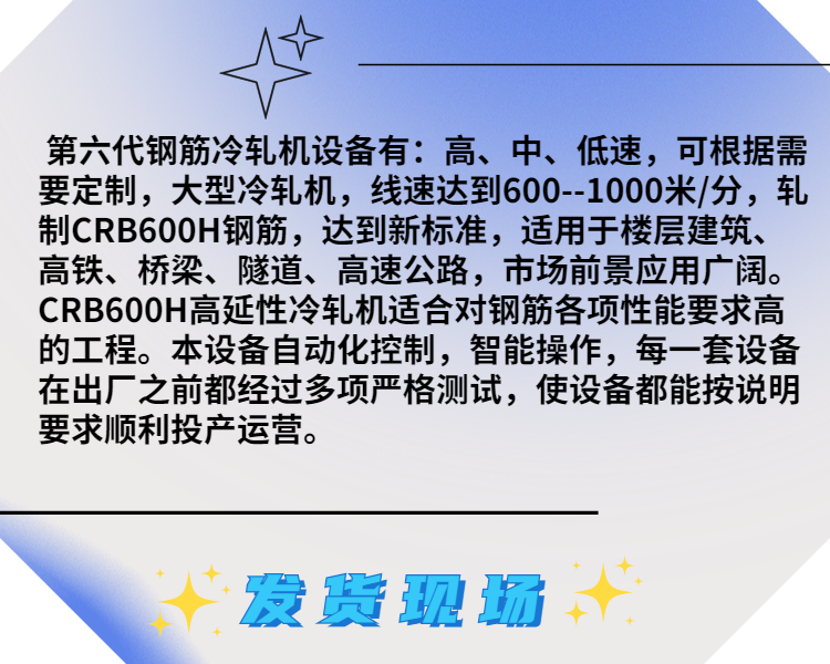 ,是金迪机械第六代钢筋冷轧机更新换代,数字控制,速度600m/min ,免费安装。
